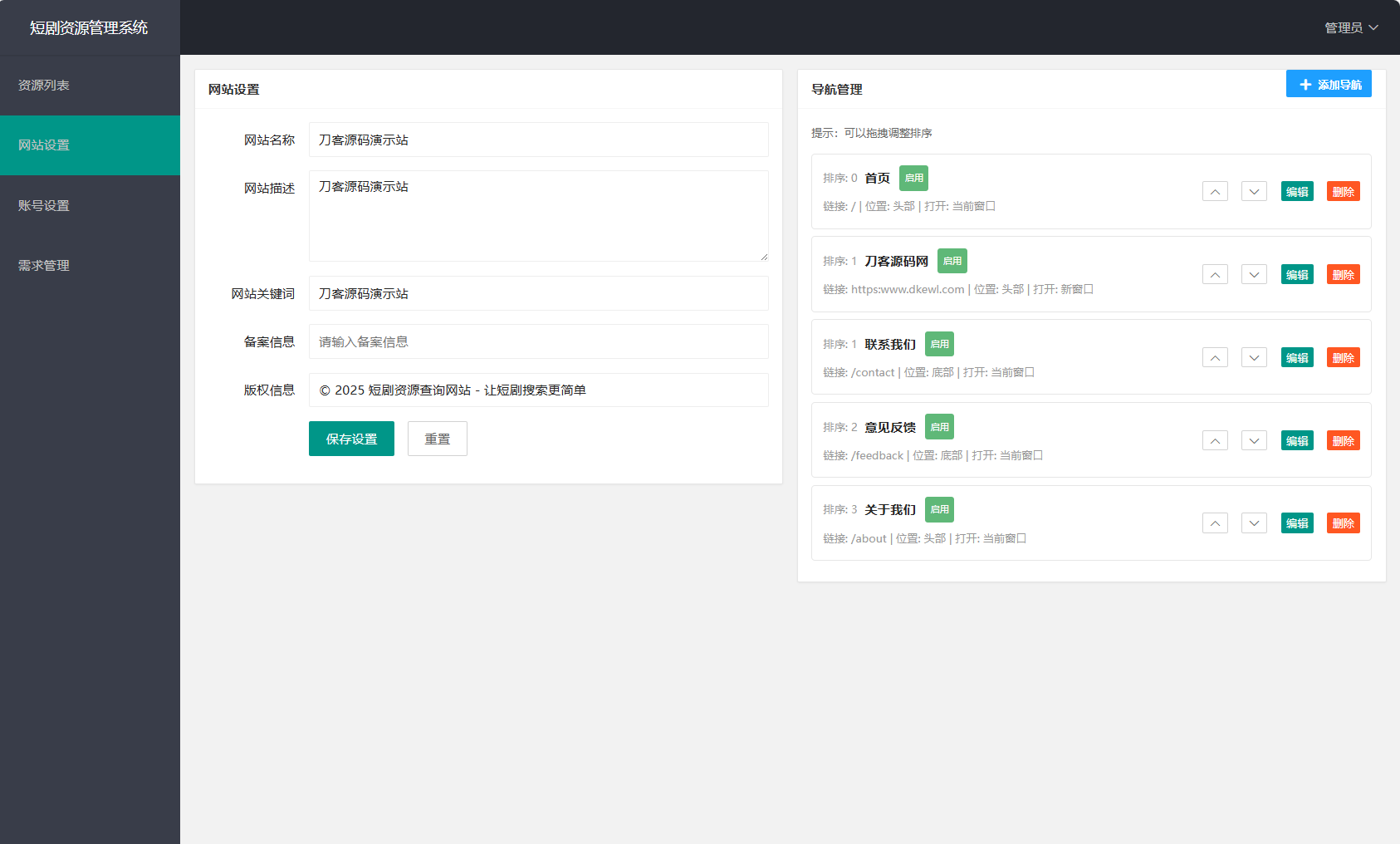 网盘短剧资源转存项目源码 支持夸克 带后台 附教程资源发布员17小时前更新关注07950免费资源网盘短剧资源转存项目源码 支持夸克 带后台 附教程资源下载夸克网盘点击下载 简介: 网盘短剧资源转存项目源码 支持夸克 带后台 附教程 安装教程: 测试环境:Nginx + PHP7.4 + MySQL5.7 数据库信息配置文件:.env 网站运行目录设置为:public 图片: © 版权声明文章版权归作者所有,未经允许请勿转载。THE END网站源码 喜欢就支持一下吧点赞50 分享QQ空间微博QQ好友复制链接收藏